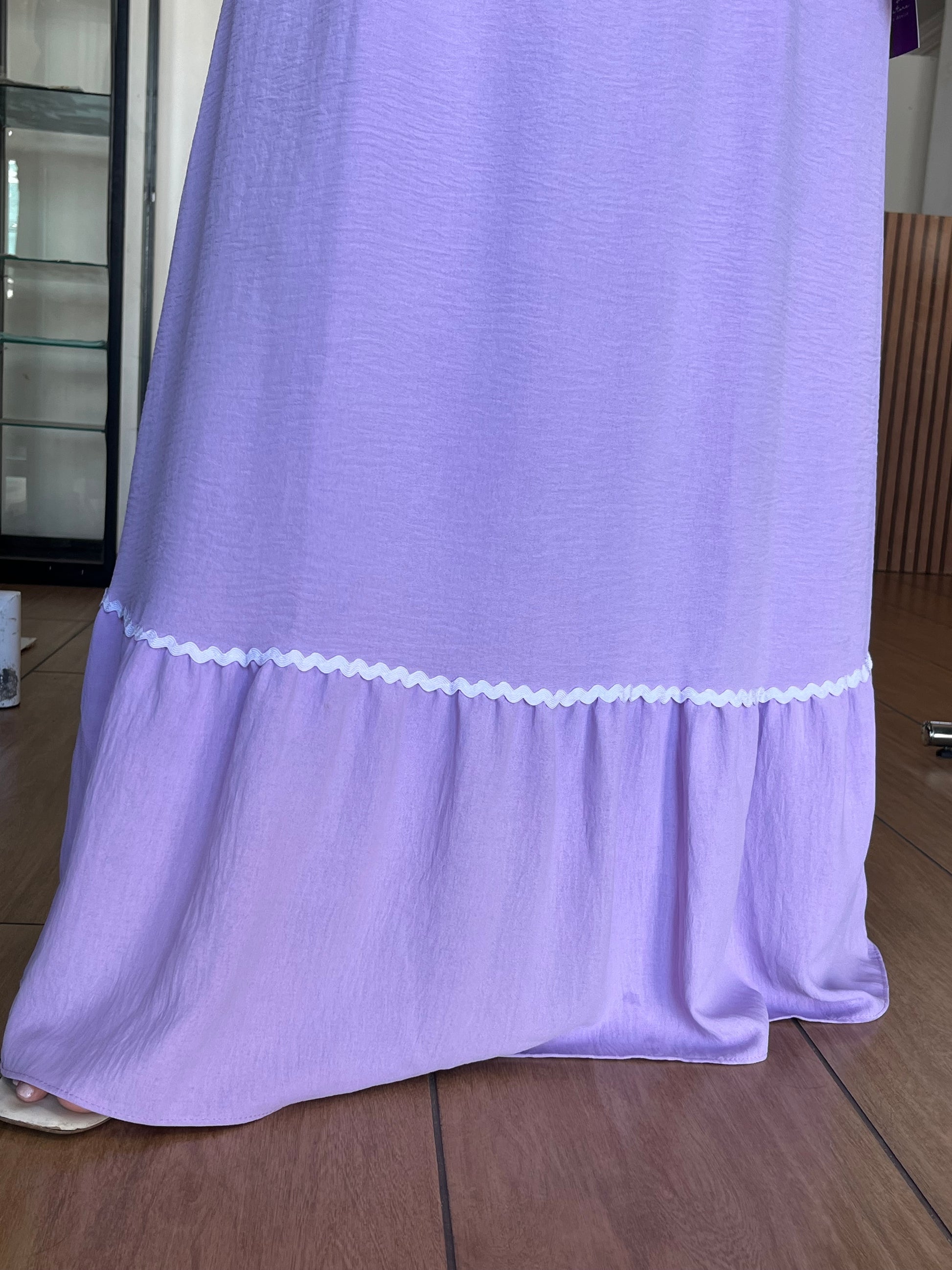 - Babado com detalhe. Destacando e elegância da saia do vestido